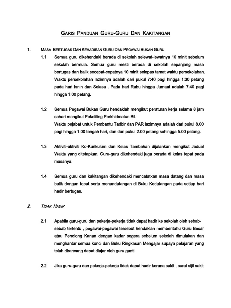 Panduan Am Guru Dan Kakitangan Sekolah Pdf Document