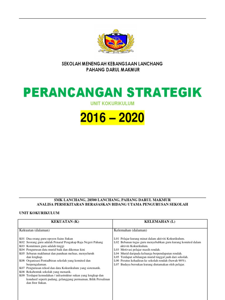 Pelan Strategik Unit Kokurikulum Smkbr Pdf Document