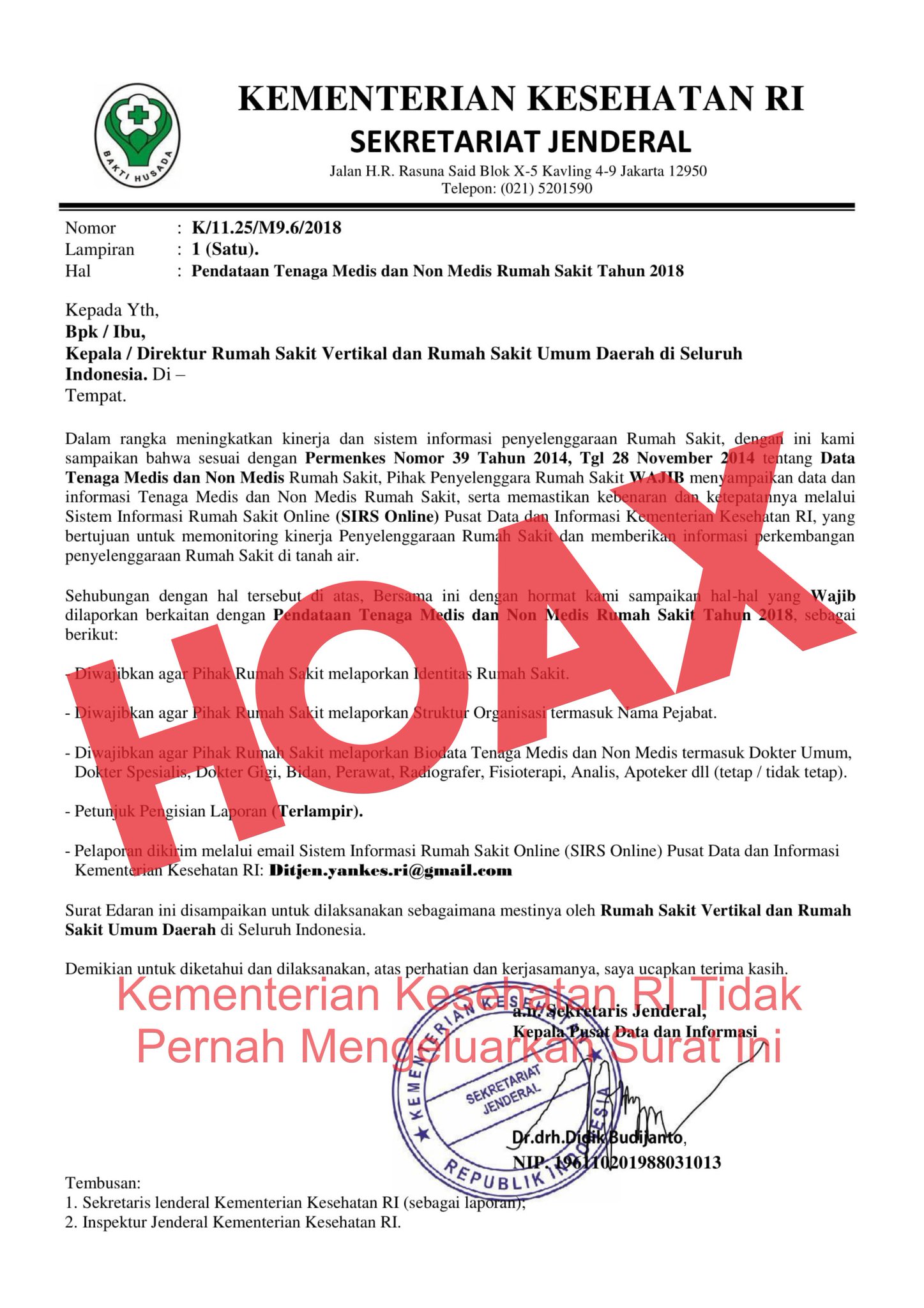Kemenkes Ri Sur Twitter Hati Hati Surat Permintaan Data Palsu Kepada Rumah Sakit Di Seluruh Indonesia Antihoaks