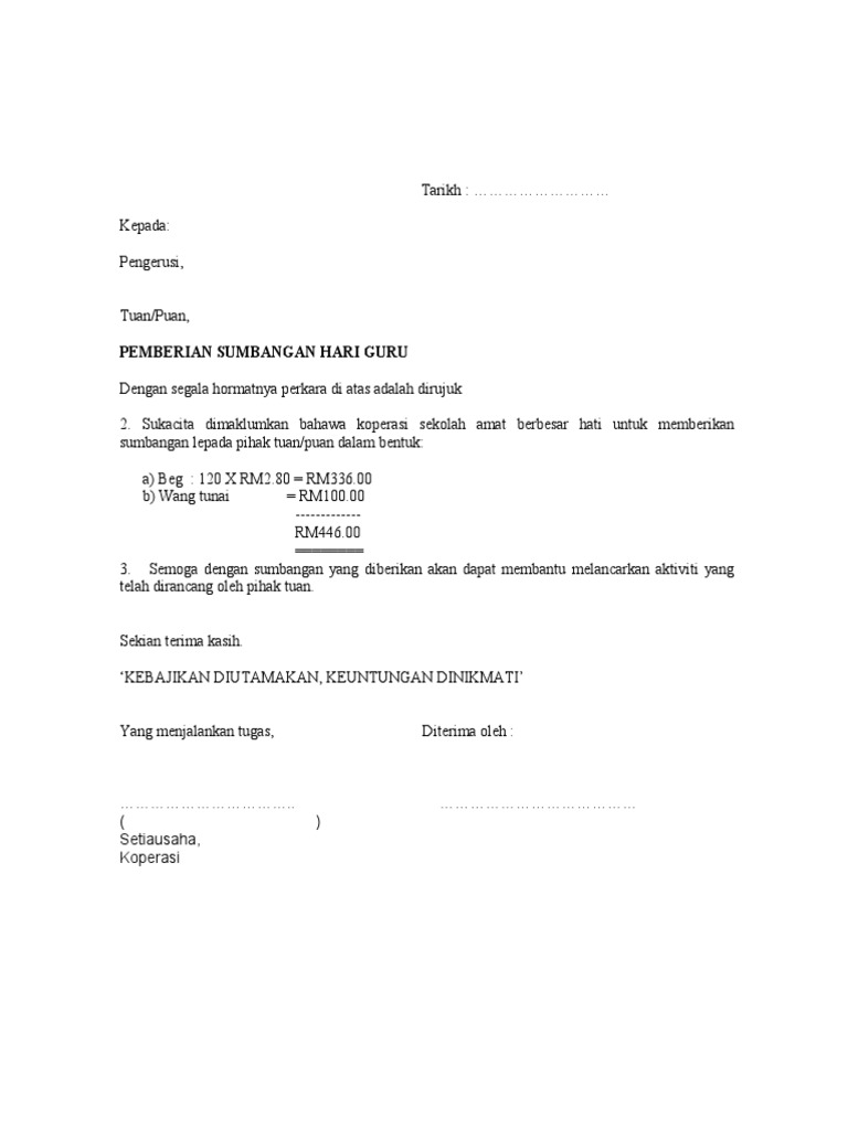 Surat Rasmi Memberi Sumbangan Arasmi