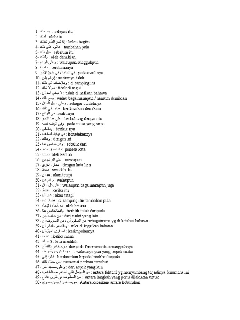 Penulis cuba mencari rujukan namun tidak ditemui. Berdasarkan usaha mereka itu didapati bahawa penanda wacana bahasa arab boleh diterapkan dalam terjemahan arab melayu. Kami telah berpindah ke alamat baharu yang lebih stabil dan selamat. Temukan segala yang ditawarkan scribd termasuk buku dan buku audio dari penerbit penerbit terkemuka.