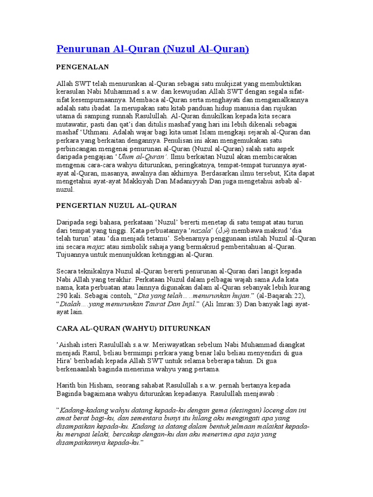 Penurunan Al Quran Nuzul Al Quran Pengenalan