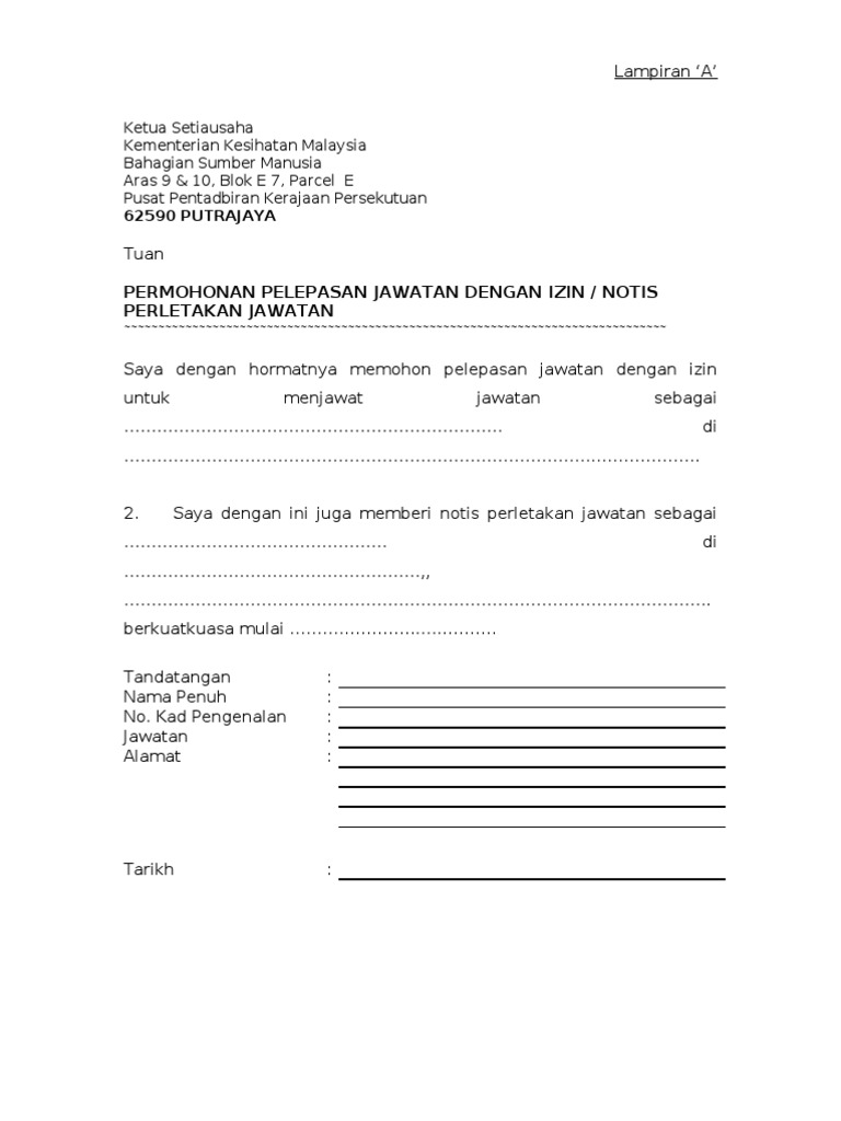 Perletakan Jawatan Contoh Surat Pelepasan Jawatan Kerajaan
