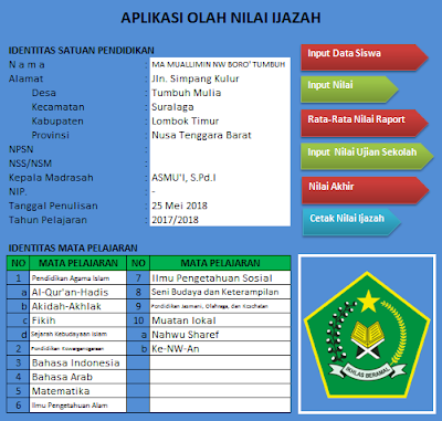 Aplikasi Pengolahan Nilai Ijazah Kurikulum 2013 Tingkat Ma Sma Smk Munaz Bagus