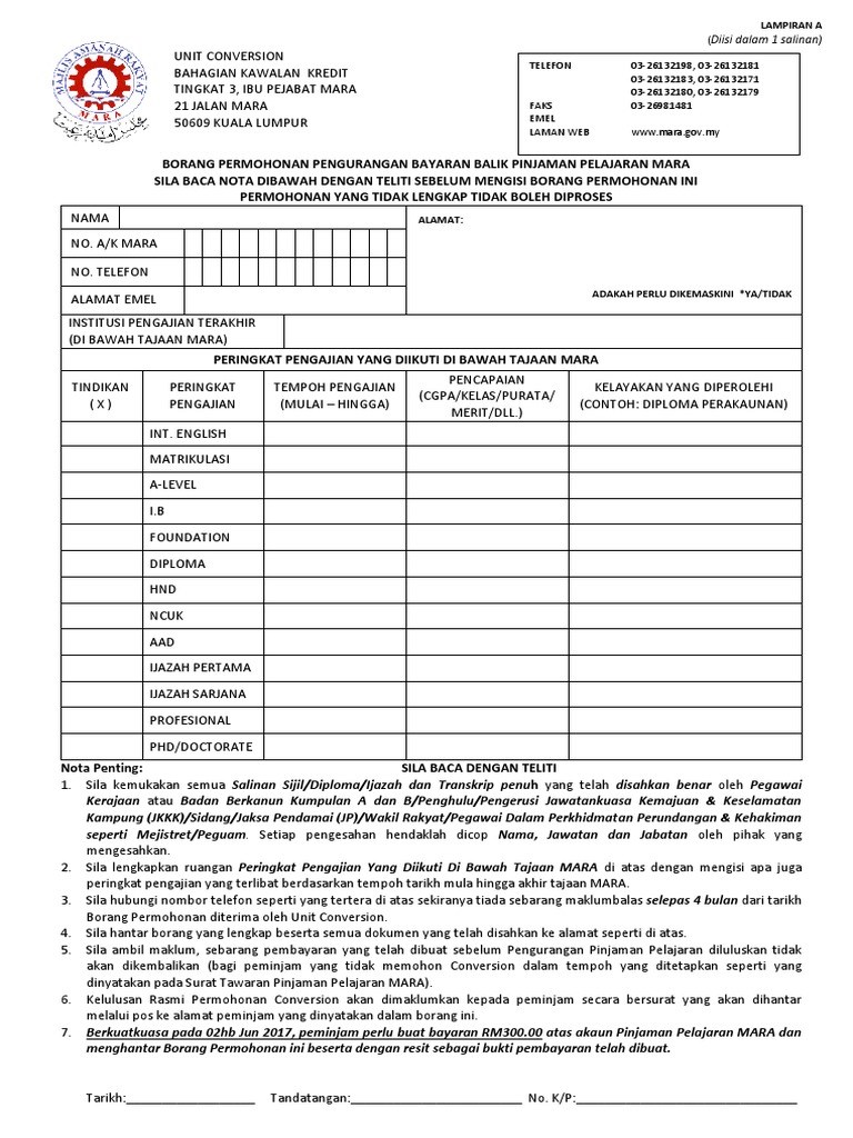 Maraeps Permohonan Pengurangan Pinjaman Pelajaran Mara Facebook