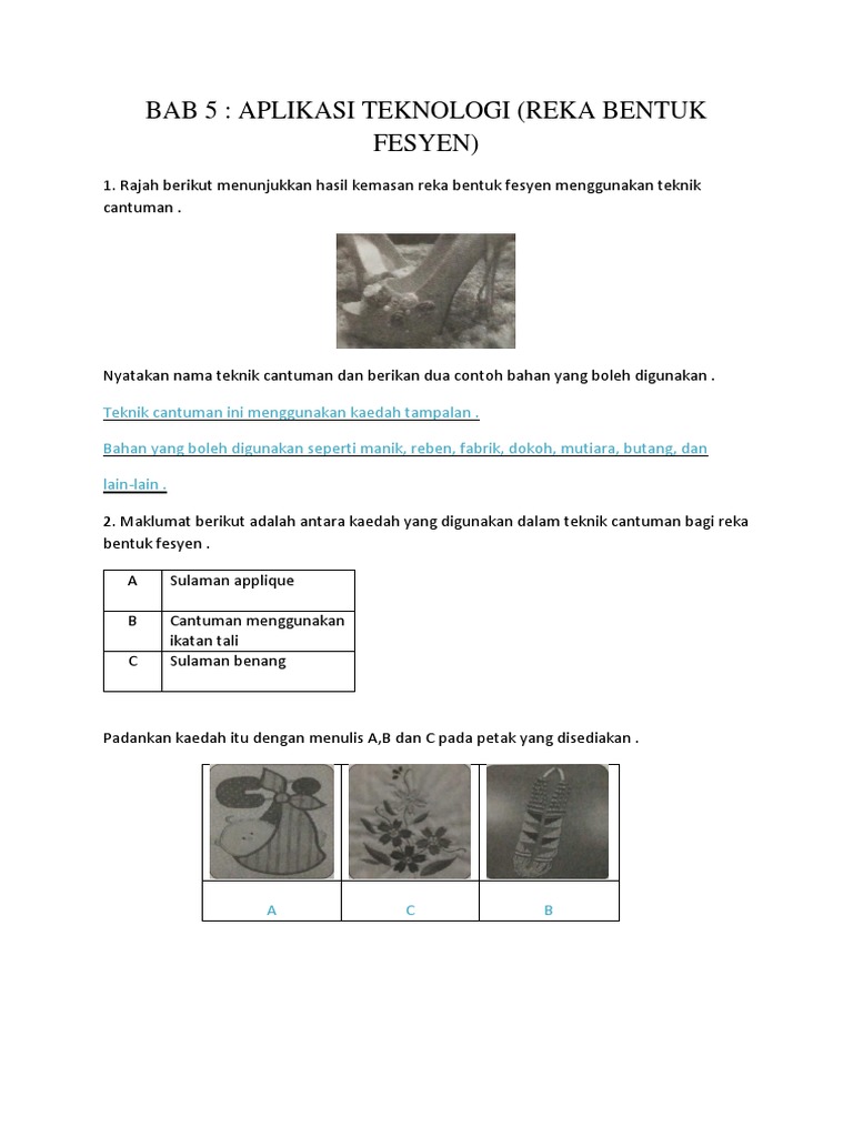 Rbt Tingkatan 1 Bab 5 Reka Bentuk Fesyen