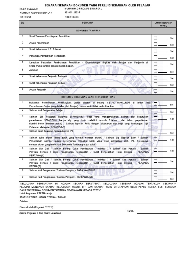 Panduan Pengisian Dokumen Perjanjian Ptptn Jpdpp Pin 8