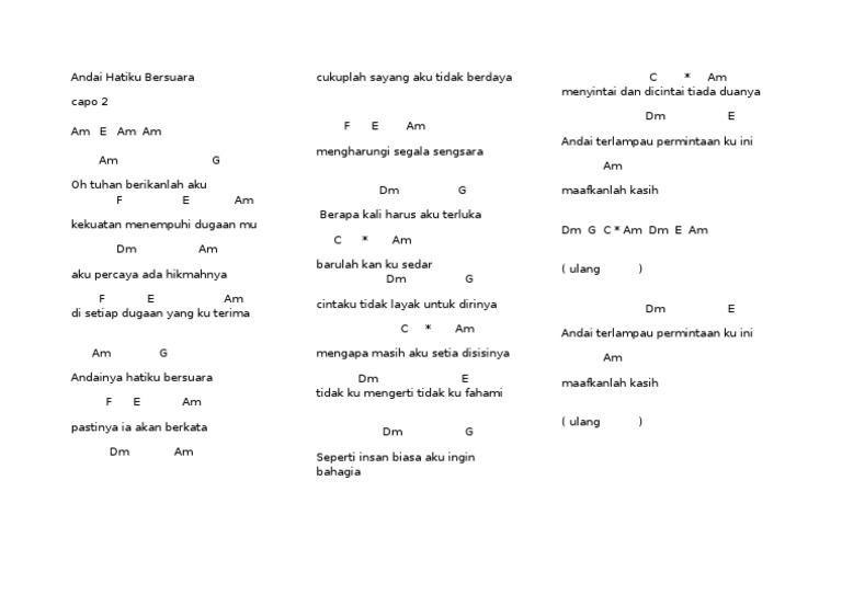 Kord Gitar Lagu Andai Hatiku Bersuara