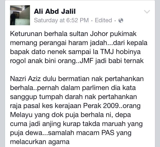 Hafiz On Twitter Mohon Pdrm Skmm Mcmc Kdnputrajaya Ambil Tindakan Tegas Kepada Pemilik Fb Atas Hinaan Dymm Sultan Johor Hrhjohorii Https T Co Ljx5civn1q