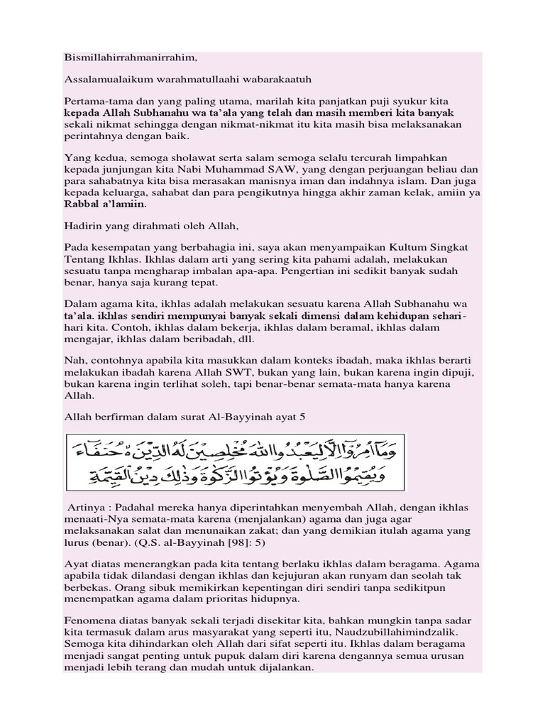 Surah Al Bayyinah Ayat 5 Merupakan Dalil Ikhlas Dalam