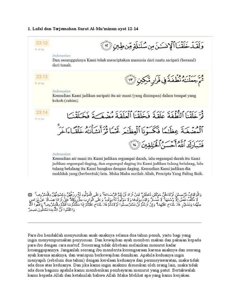 Surah Al Mu Minun Ayat 12 14 Dan Terjemahan