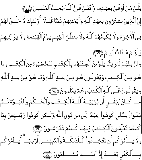 Surat Ali Imran Ayat 76 77 78 79 80 Dan Artinya Terjemahannya Alquran Surat Ayat