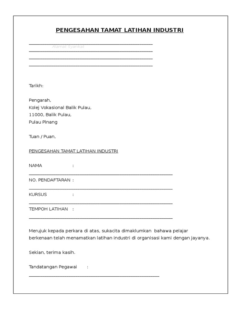 Surat Pengesahan Tamat Latihan Industri