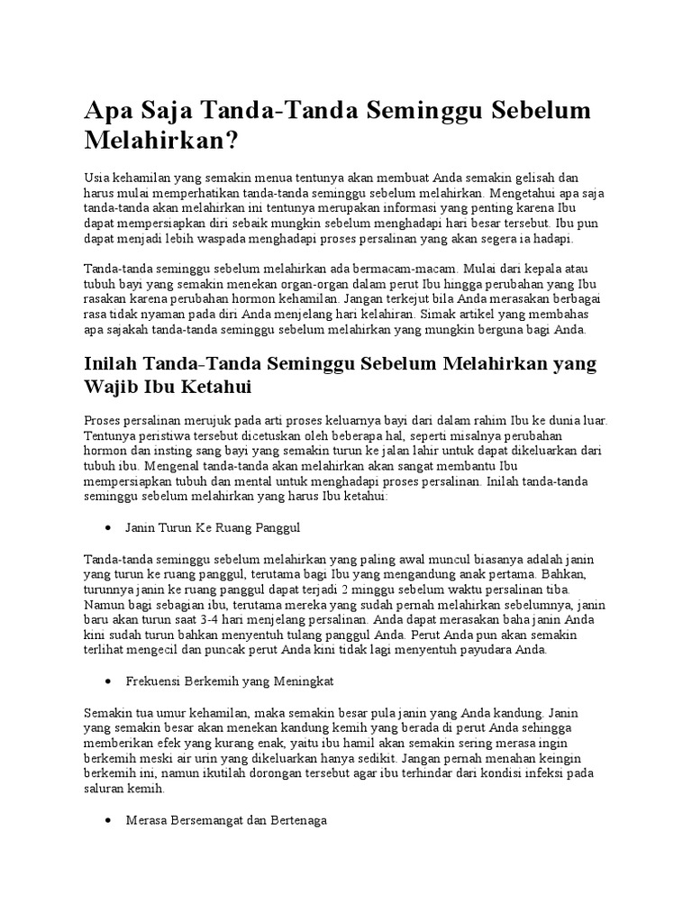Tanda Melahirkan Kurang Dari Seminggu Apa Saja Ya