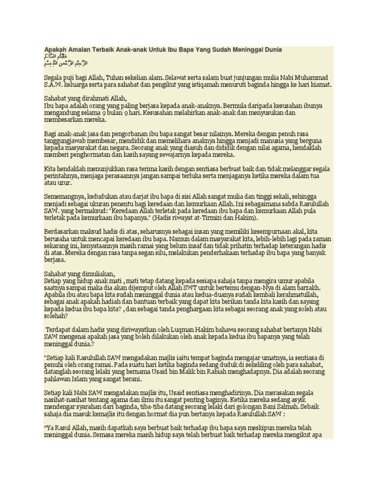 Darul Ulum Ihya Ulumuddin Amalan Anak Anak Untuk Ibu Bapa Yang Sudah Meninggal Dunia