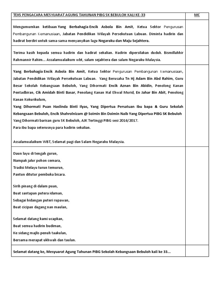 Skrip Pengacara Majlis Mesyuarat Agung Pibg 2 Docx Document