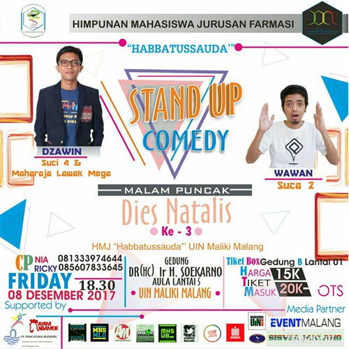 Event Malang On Twitter Daripada Jomblo Malam Sabtu Nganggur Mending Ketawa Bareng Bersama Dzawin Dan Wawan Di Acara Malam Puncak Diesnatalis Hmj Farmasi Habbatussauda Yg Ke 3 08 Desember 2017 Di